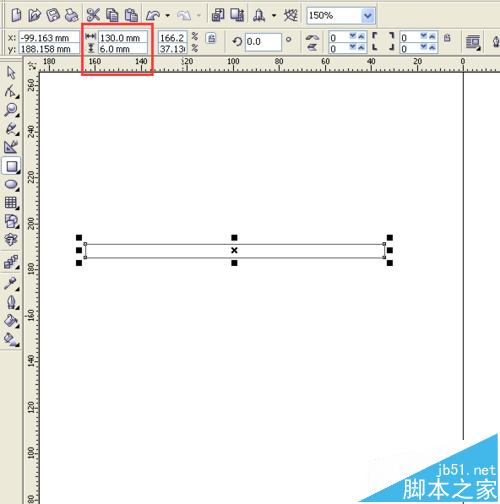 4、再用”矩形工具“,画一个长为130mm,高为6mm的长方形。
