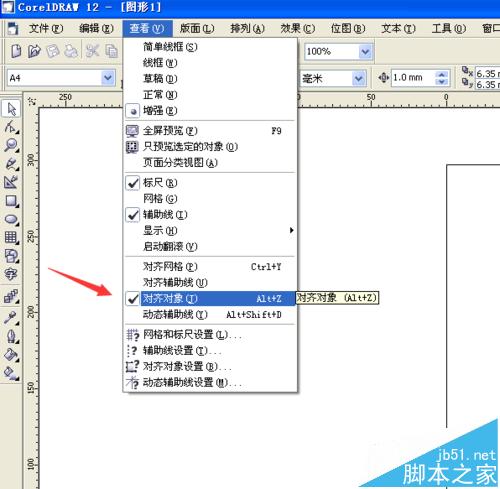 5、点击“查看”菜单,将“对齐对像”勾选上。