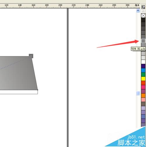 8、点击填充上右上角的黑色颜色块,再点击软件上的50%黑,将颜色块设置为50%黑。