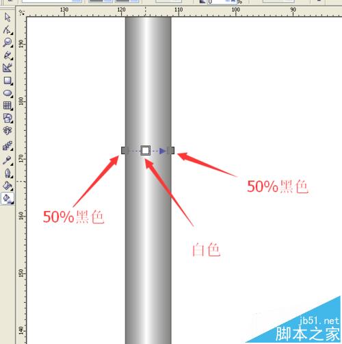 15、接着,将长方形上的线性填充颜色块设置为,左右都是50%的黑,中间设置为白色,这样,一个桌脚就做好了。