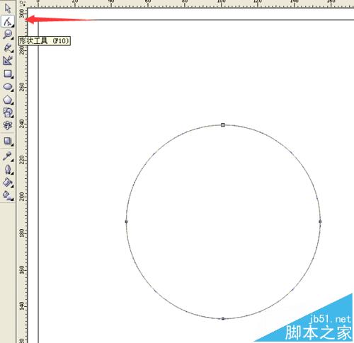 3、选择形状工具,点击正圆上边的节点,再点击属性栏的“使节点成为尖突”的按键。