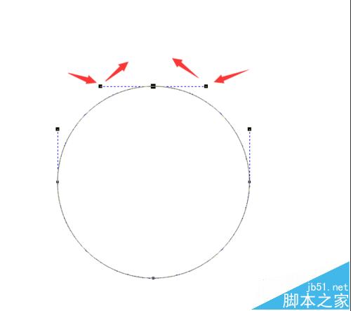 5、将圆的左右两个节点都选择上,再按着Ctrl键,再用鼠标点击右边的节点往下移动节点,圆的左右节点就会同时往下移动了。