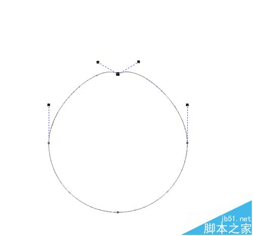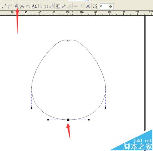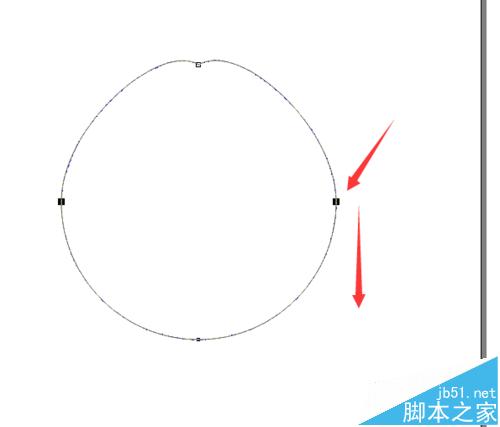 6、点击椭圆下边的节点,将节点往下移动一些,使椭圆变长一些。