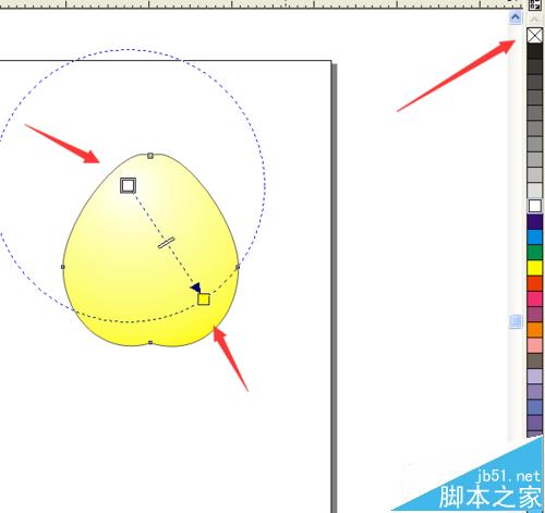 11、现调整填充线上的两个颜色块,调整为如下图的效果。并且右击软件右上角的交叉,去除雪梨的轮廓。