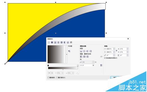 10、利用工具栏中的透明度工具,如下图所示,拉一个透明度效果出来,这样,所有的图层就做完了。接下来全选所有图层ctrl+A,然后点击F12弹出轮廓笔,将轮廓改为无,点击确认