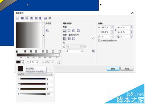 7、把渐变点如下图排列,同第六步原理,将两边的渐变点填充成黑色C0 M0 Y0 K 100 中间的渐变点填充为C0 M0 Y0 K30,这样高光的效果就出来了。然后点击确认。