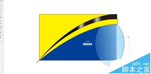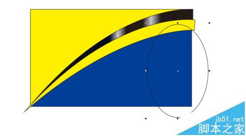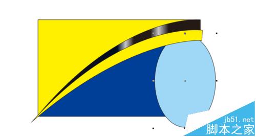 9、然后利用椭圆工具画一个椭圆型,如下图,将其填充为冰蓝色C40 M0 Y0 K0,ctrl+pagedown键将椭圆移到至黄色图层下面
