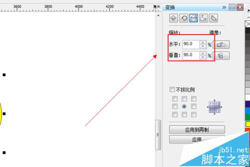 4、如图所示,我们填写一个缩放的比例值,这里我们让其缩放为原图形的90%。