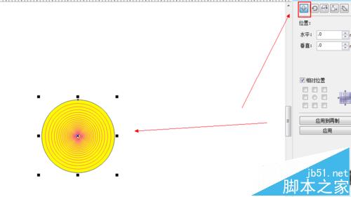 10、如图所示,我们已经为点击花蕊最边缘的圆形,之后我们点击箭头所指的“位置”按钮。