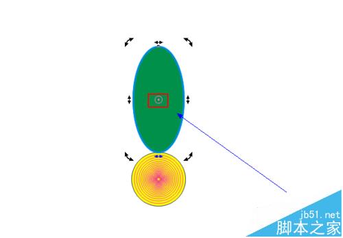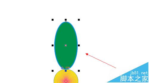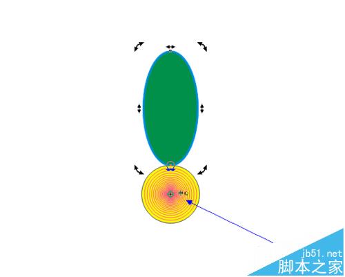 15、如图所示,我们用挑选工具,双击一下这个绿色的花瓣,之后我们对箭头所指的圆点进行移动。
