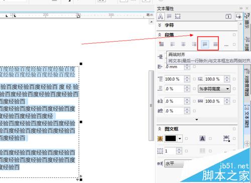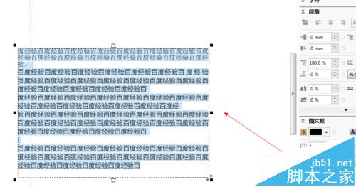 1、如图所示,我们已经在CorelDRAW里面做出了一个文本框,并且输入了文字。