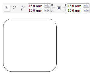1、使用“矩形工具”按住Ctrl键绘制正方形,调整调整圆角“转角半径”为16mm,如图所示。