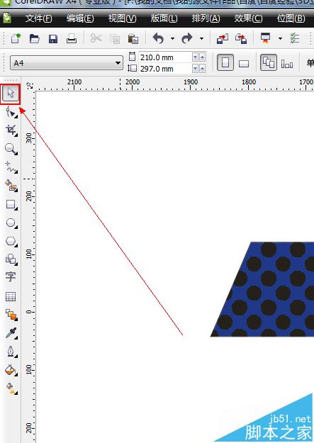 2、如图所示,用选择工具选中箭头所指的这个图形。
