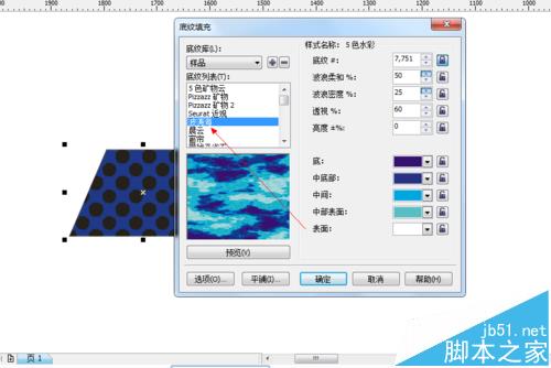 5、如图所示,我们在弹出的对话框中,我们点击选择箭头所指的波涛海底纹。