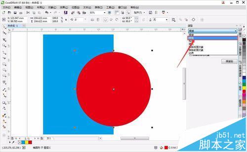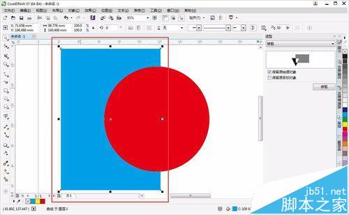 9、选中红色圆形图案,把修剪选项中选择“保留原始目标”,点击“修剪”