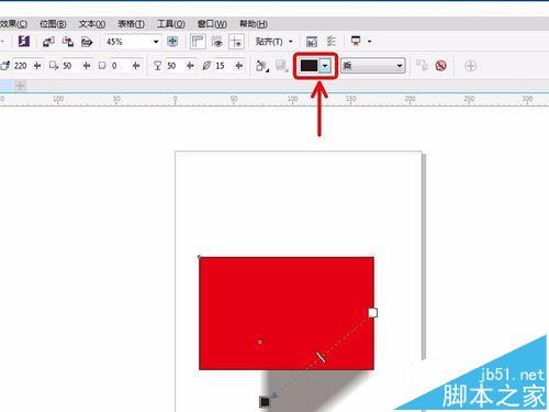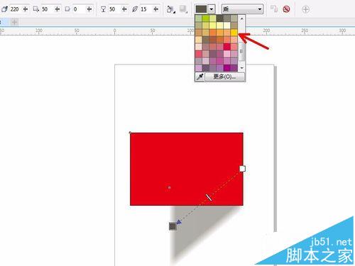 3、此时我们看不到阴影?为什么,因为我们刚刚只是画了一个矩形框。这里还需要给框填充颜色,使其成为一个平面。对,平面才有阴影吧。选择右侧颜色工具条,比如红色点击一下。这时,我们看到阴影了。