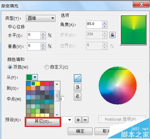 (1)颜色调和就是逐渐变化的颜色选择,想要文字或者图形呈现什么样的色彩变化,可以直接选择“从”和“到”中的颜色。