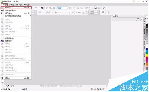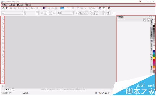 1、首先打开coreldraw软件,现在我们看到的是coreldraw软件的一个操作界面。左面是coreldraw的工具栏,帮助我们调整图像的属性,右边是默认调色板,帮助我们快速的给图案至入颜色。上边是设置导航栏,给予我们给图像赋予属性。