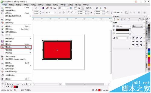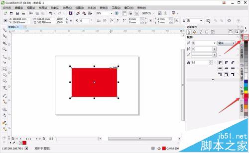 6、然后点击右侧的“默认调色板”中的红色(左键点击),给矩形图案填充上红色,然后点击上方的“去边框颜色的白色有对角线的小方块”,把红色矩形的默认边框线去掉。