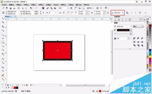 7、然后点击黑色图标(右键点击),给矩形加上黑色的边框,然后接着在上方的属性栏中,选择边框的尺寸。
