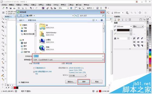 12、选择CDR文件,这个格式的文件是coreldraw的源文件格式,能方便我们下次接着操作。选择完毕,点击“保存”按钮。