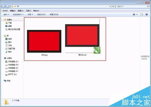 13、现在我们在你所选择的保存的文件夹里,看到你所保存的文件。一个是图片jPG格式,一个是CDR源文件格式。