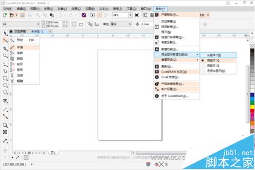 如图所示,选择“自版本X6”则CorelDRAW界面上会出现关于X6版本增进和改变功能,图中粉红色标示即为改进和最新引入。