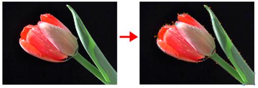 1、打开CorelDRAW X8软件,导入位图,使用“贝塞尔工具”沿花朵轮廓勾出造型。