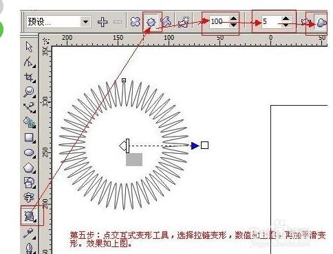 5、点击交互变形工具,选择拉链变形,数值如图,在加平滑变形。效果如图。