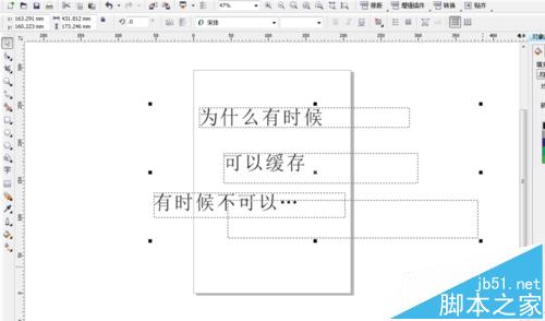 1、在CorelDRAW里选中所有需要对齐的文字(按住Shift键将文字一个一个单击即可全部选中)