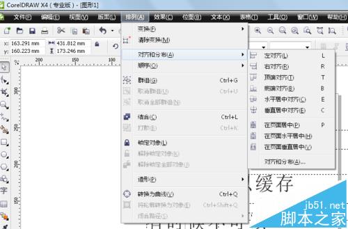 2、选择“排列”>“对齐与分布”>“对齐与分布”,可看到弹出来的弹窗,开始设置参数。