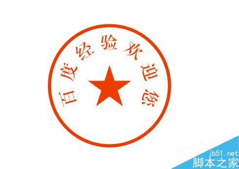 7、将外框、文字和星形填充成红色,完成印章的制作过成