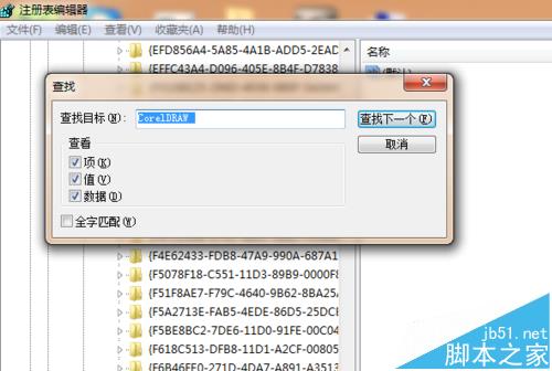 2、在注册表中按ctrl+F打开查找-->输入CorelDRAW -->删除里面所有的coreldraw里的文件