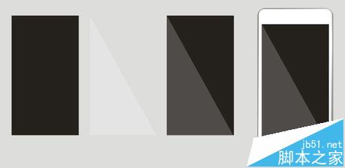 4、画一个黑色矩形,复制该矩形用形状工具去掉一个节点,填充白色,做50%透明度,再与黑色矩形对齐,然后居中到之前做好的手机面板上。