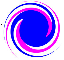 6、更改图像颜色:选中旋转后的复制对象,在调色板上单击蓝色,更改其填充颜色,完成标志的制作,效果如图所示: