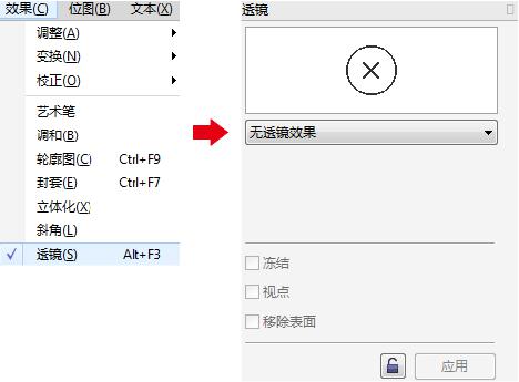 注意:透镜只能应用于封闭路径及艺术字对象 , 而不能应用于开放路径、位图或段落文本对象;也不能应用于已经建立了动态链接效果的对象(如立体化、轮廓滑等效果的对象)。