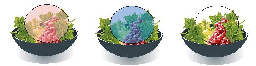 3. 颜色添加 该透镜可以为对象添加指定颜色,就像在对象的上面加上一层有色滤镜一样。该透镜以红、绿、蓝三 原色为亮色,这三种色相结合的区域则产生白色。比率增量框中的百分比值范围是0至100之间。比值越大,透镜颜色越深,反之则浅。