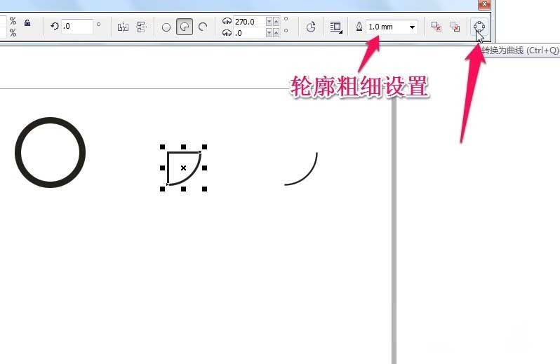 5、轮廓的粗细设置及SHIFT+Q转曲