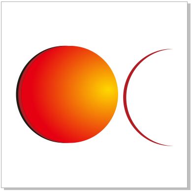 步骤四、填充图形 将剪切剩下的图形复制到图像中的正圆上,按Shift键等比例缩小一点,并填充颜色为(C:0,M:85,Y:96,K:0),得到以下图像效果。选中半月图形,复制一份,单击属性栏中的“镜像”按钮,将图形水平调转方向,填充颜色为(C:0,M:13,Y:75,K:0),效果如图所示。