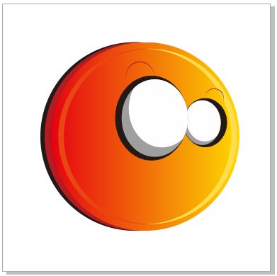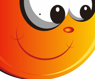 步骤七、复制并调整图形 将左边绘制的所有图形全选复制,执行“水平镜像”操作,然后编辑PowerClip将白色椭圆向右移动至适当位置后停止编辑。再次调整大小和方向后,放在右侧,作为卡通人物的左眼,效果如图所示。