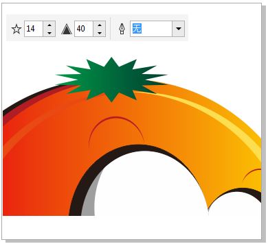 步骤十三、绘制多边形 选择工具箱中的“星形工具”绘制多边形,在属性栏中设置具体参数,按快捷键f11填充渐变颜色,效果如图所示。