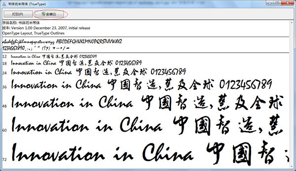 方法三:下载我们想要的字体,解压压缩包,双击打开下载好的字体,弹出的对话框中单击“安装”按钮即可。