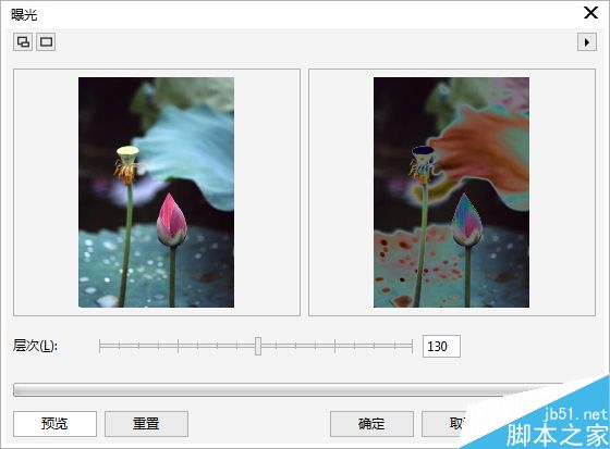 另外,在“位图>颜色转换”中的“曝光”滤镜,可以将图像制作成类似胶片底片的效果,进行颜色的反相。对比效果如下图所示。