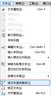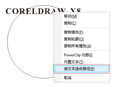 还有一种方法,即鼠标右键拖动文字至路径上,松开鼠标,在弹出的选项列表中选择“使文本适合路径”。
