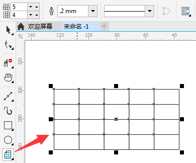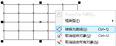 步骤二 在窗口里从左上角往右下角拉动,绘制“表格”,鼠标右键将表格“转换为曲线”,然后将表格“取消组合对象”。