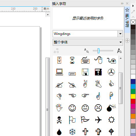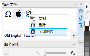 2. 面板以“Arial”字体为默认显示,包含“所有字体”,您还可以在上面选择自己需要的字符或图形。