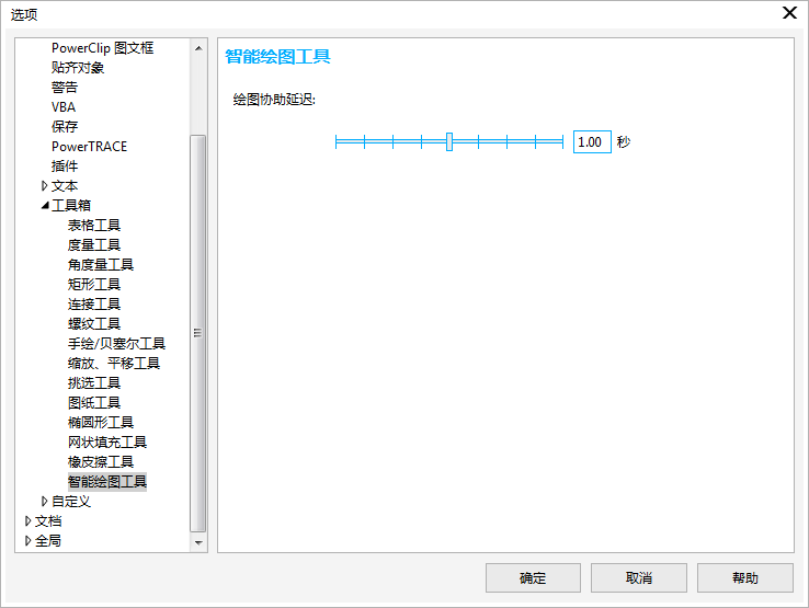 2. 在工作区类别列表中,单击工具箱,然后单击智能绘图工具。