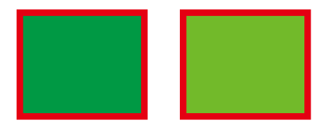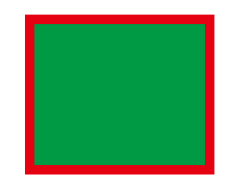 使用“矩形工具”绘制矩形(以矩形为例,您也可以使用任何形状的图形以操作实验),鼠标左键单击调色板,将矩形填充颜色,右键单击调色板,设置轮廓线颜色。或者直接拖动色盘上的色块到矩形上以作填充或轮廓描边使用,这里选择填充填充为“红”,描边为“绿”。