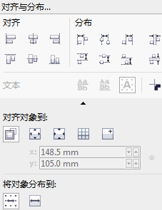 步骤二 在属性栏中单击“对齐与分布”按钮,打开“对齐与分布”泊坞窗。