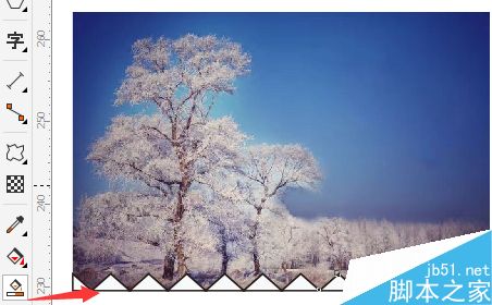 4. 按Shift键同时选中图片和锯齿线条,按下键盘上的“B和C”键,做底端对齐和垂直居中对齐,如下图所示。